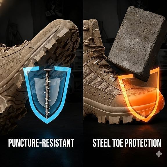 Men's Tactical Combat Work Boots 【Wide Fit】 ($63.99) North American workers often struggle with narrow tactical designs. Our HydroRange ($71.99) and Wide Fit series ensure that comfort isn't sacrificed for protection, providing ample toe box space for those long, standing shifts.